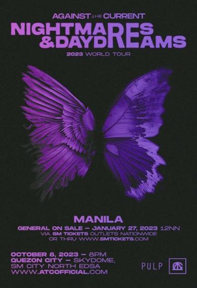 Get ready for an unforgettable experience i as AGAINST THE CURRENT, the acclaimed American Pop-Rock sensation from New York, returns to the Philippines! Experience a night of electrifying performances that will leave you in awe, just as they have captivated audiences worldwide!